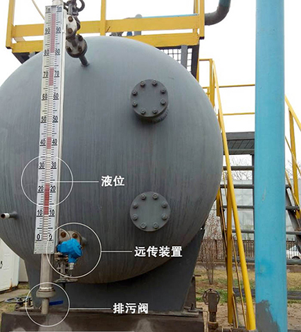 l、側(cè)裝式液位計與被測容器的上下分液管間*好各裝一只截止閥門以便打開或關(guān)閉液位計;另一方面為維修液位計帶來方便。在上下截止閥關(guān)閉時可打開液位計底部排污法蘭或卸下排污螺釘,注入清水即可清洗液位計的主體。