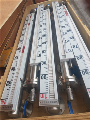 6.調(diào)試時應(yīng)先打開上部引管閥門,然后緩慢開啟下部閥門,讓介質(zhì)平穩(wěn)進(jìn)入主導(dǎo)管(運(yùn)行中應(yīng)避免介質(zhì)急速沖擊浮子,引起浮子劇列波動,影響顯示準(zhǔn)確性),觀察磁性紅白球翻轉(zhuǎn)是否正常,然后關(guān)閉下引管閥門,打開排污閥,讓主導(dǎo)管內(nèi)液位下降,據(jù)此方法操作三次,確屬正常,即可投入運(yùn)行(腐蝕性等特殊液體除外);