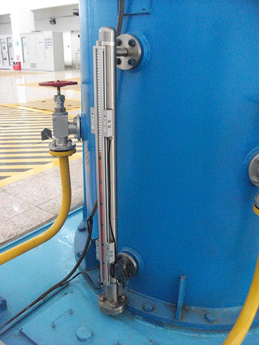 在液位計上安裝變送器。變送器由傳感器和轉(zhuǎn)換器兩部分組成,它通過磁浮子上下移動,經(jīng)磁耦合作用使導管內(nèi)測量元件依次動作,獲得電阻信號變化,轉(zhuǎn)換成0~10或4~20mA的標準電流信號輸出,以便與數(shù)字顯示儀表或計算機聯(lián)接,實現(xiàn)遠傳顯示及控制。