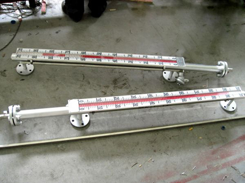 磁翻板液位計(也可稱為磁性浮子液位計)根據浮力原理和磁性耦合作用研制而成。當被測容器中的液位升降時,液位計本體管中的磁性浮子也隨之升降,浮子內的永久磁鋼通過磁耦合傳遞到磁翻柱指示器,驅動紅、白翻柱翻轉180°,當液位上升時翻柱由白色轉變為紅色,當液位下降時翻柱由紅色轉變為白色,指示器的紅白交界處為容器內部液位的實際高度,從而實現液位清晰的指示。